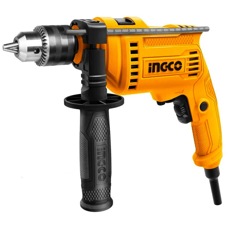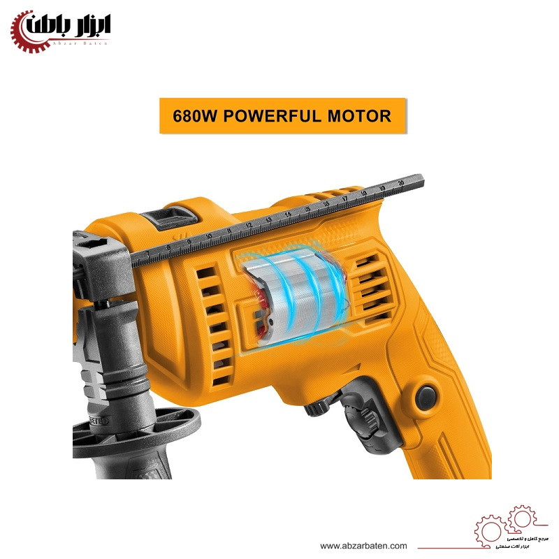 دریل چکشی 680 وات اینکو مدل ID6808 یک دریل 2 حالته چکشی و سوراخکاری است که داری یک موتور قدرتمند 680 واتی است که اگر شما به دنبال خرید یک دریل چکشی با کیفیت و قیمت مناسب برای استفاده خانگی و نیمه صنعتی هستید پیشنهاد تیم کارشناسان فنی ابزار باطن به شما دریل چکشی 680 وات اینکو مدل ID6808 میباشد که اگر بخواهیم به بررسی مشخصات این محصول بپردازیم طراحی ارگونومیک و منحصر به فرد این محصول و به اصطلاح جمع و جور و خوش دست بودنش توجه رو به خودش جلب میکنه در عین حال سرعت گردش آزاد این دستگاه برابر است با 0-3000 دور در دقیقه و نرخ ضربه آن در حالت چکشی 0-48000 ضربه در دقیقه سه نظام این دریل هم یک سه نظام 13 میلی متری آچارخور است و بر روی بدنه آن نیز که به صورت عایق دوبل ساخته شده است دکمه چپگرد و راستگرد و دکمه تنظیم حالت چکشی و سوراخکاری قفل کن سوییچ و دکمه تنظیم سرعت تعبیه شده است شما میتوانید برای بررسی دقیق تر مشخصات این محصول و مشاهده ویدیو به ابزار باطن مراجعه کنید در بسته بندی مقوایی رنگی این محصول 1 عدد دسته کمکی 1 عدد خطکش سوراخکاری 1 عدد آچار سه نظام و دفترچه راهنما به عنوان اقلام همراه قرار داده شده است شایان به ذکز است که این محصول علاوه بر تولید با استفاده از تکنولوژی آمریکا دارای استاندارد CE اروپا نیز میباشد