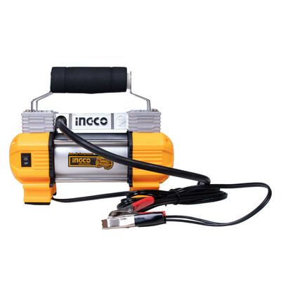 کمپرسور باد دو سیلندر اتوموبیل اینکو مدل AAC2508، این کمپرسور 12 ولت می تواند انرژی مورد نیاز خود را از باتری خودرو تغذیه کند این محصول به همراه 4 عدد نازل و شلنگ هوا و فشار سنج و کیف برزنتی با کیفیت ارائه شده که مناسب برای باد کردن انواع لاستیک خودروهای سواری، دوچرخه و موتور سیکلت، توپ، اسباب بازی و...می باشد. کمپرسور باد دو سیلندر اتومبیل اینکو با فناوری دوسیلندر ساخته شده است و قادر است از طریق برق 12 ولت باتری خودرو تغذیه شود. این کمپرسور باد خودرو با حداکثر فشار 120PSI و هوای خروجی با دبی 45 لیتر در دقیقه را ایجاد می کند. در بسته بندی این کمپرسور 4 عدد نازل، شلنگ هوا و فشارسنج قرار داده شده است و تماما در یک کیف برزنتی با کیفیت قرار میگیرند. این کمپرسور دارای بدنهی با کیفیت، زیبا و ارگونومیک با عملکرد خوب و کارایی بالاست و برای حمل و نقل به یک دستهی حمل با روکش اسفنجی نرم بادوام مجهز شده است. یک ویژگی خوب این دستگاه دارا بودن چراغ LED است که آن را برای استفاده به عنوان چراغ قوه مناسب کرده است. از این کمپرسور باد 2380 گرمی، می توان برای باد کردن انواع لاستیک خودروهای سواری، دوچرخه و موتور سیکلت، توپ، اسباب بازی و وسایل مشابه استفاده کرد. ابعاد این دستگاه برابر با 25 × 21× 10 سانتی متر و وزن آن برابر با 2380 گرم است و در یک بسته بندی زیبا و نارنجی رنگ به وزن 3200 گرم و ابعاد 25 × 22× 10 سانتی متر توسط شرکت اینکو در کشور چین و تحت لیسانس آمریکا تولید و عرضه شده است. این محصول مطابق با استاندارد CE اروپا ساخته شده است و شرکت اینکو برای تولید آن حایز کد ثبت اختراع شده است.