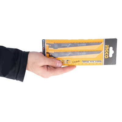 | سایر توضیحات | Ingco SSB644D Sabre Saw Blade دارای دو عدد تیغه دارای پوشش سخت شده Tough coat جهت کاهش گرما و اصطکاک سطح در حین فعالیت تیغه ها از جنس HCS یا فولاد کربن بالا اندازه کلی تیغه ها : 150 میلیمتر طول قسمت دندانهدار تیغه: 130 میلیمتر تیغه ها به صورت 6 دندانه در اینچ یا 6TPI دارای انعطاف پذیری بالا مناسب برای دستگاه اره افقی بر دارای خاصیت برش سریع یا Fast Cut دارای ویژگی Clean Cut مناسب برای برش انواع چوب با ضخامت کمتر از 100 میلیمتر وزن بسته بندی: 48 گرم ابعاد هر تیغ: 150 × 19 میلیمتر ابعاد بسته بندی: 20 × 8 × 0.7 سانتیمتر ساخت کشور چین تحت لیسانس آمریکا |