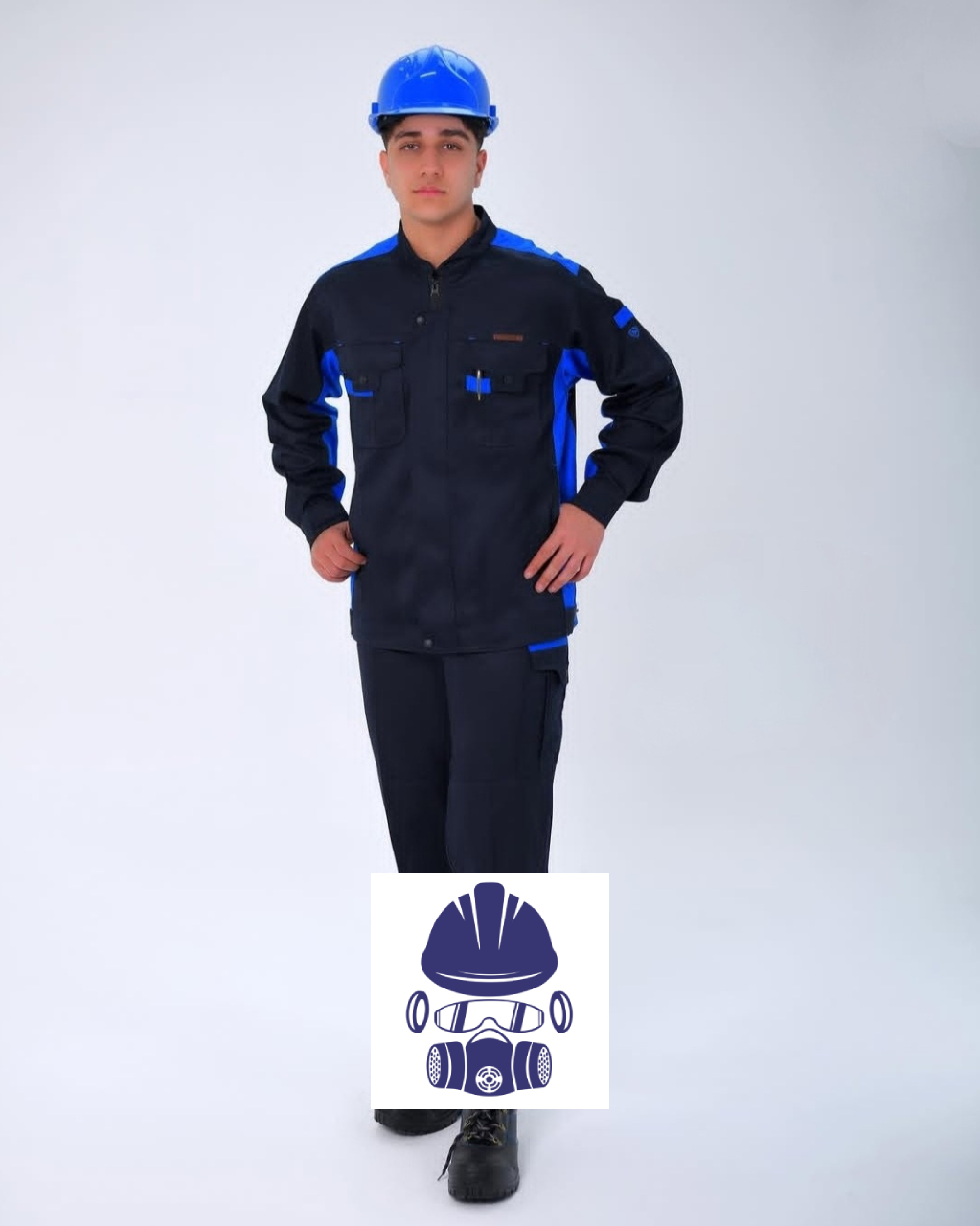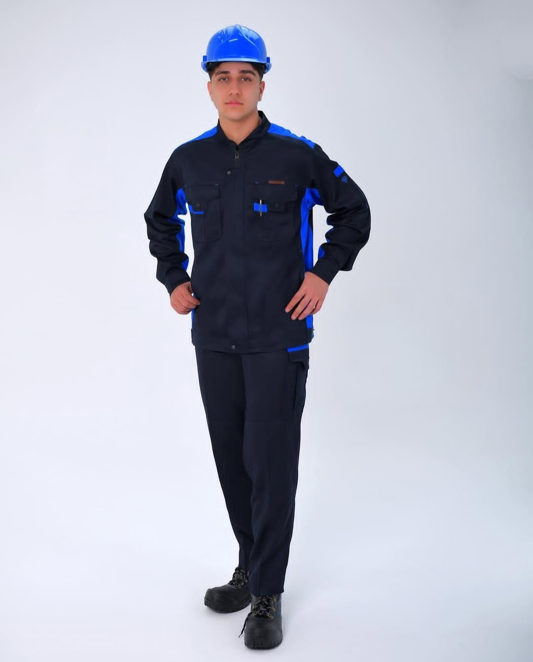 لباس کار سهند سرمه ای آبی شالی پروشات، انتخابی مطمئن برای محیط کاری سخت و پرتحرک است.