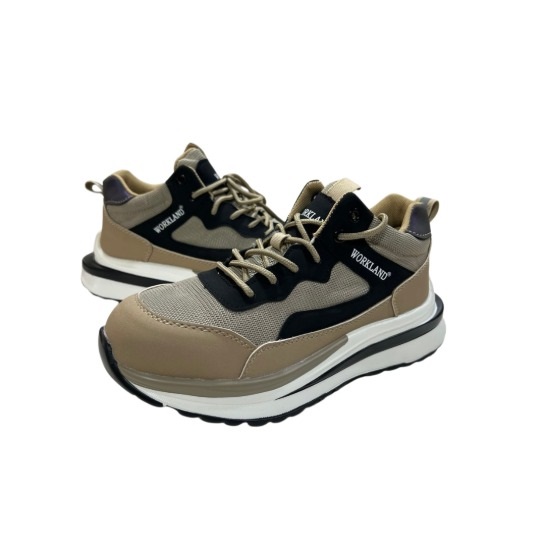 این مدل کفش متعلق به برند WORKLAND تولید شده در کشور چین می باشد . وزن این کفش نسبتا سبک بود و هر لنگه آن ( سایز 42 ) 515گرم وزن دارد . طراحی آن بسیار اسپرت و ظریف بوده و اصلا در نگاه اول کفش ایمنی بنظر نمی رسد . جنس رویه آن ترکیبی از چرم جیر و پارچه بافت مش تنفس پذیر با طراحی بسیار زیبا و چشمگیر می باشد . سرپنجه این کفش از جنس استیل است . زیره کفش از جنس PU , آنتی شوک ( SHOCK ABSORPTION جاذب ضربه ) در قسمت پاشنه پا و ضد لغزش بوده و منعطف و همچنین مقاوم در برابر روغن و مشتقات نفتی می باشد . ساق این کفش متوسط می باشد و قوزک پا را بخوبی پوشش می دهد .