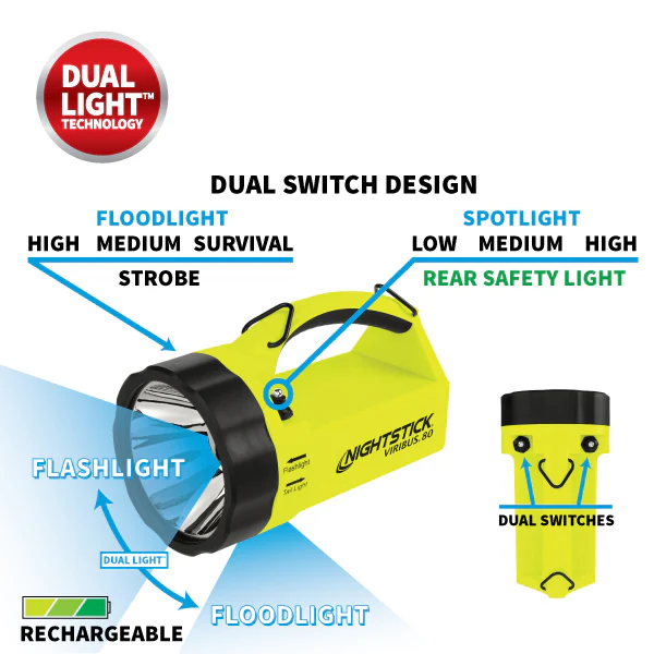 چراغ قوه Nightstick XPR-5580 Viribus یک نورافکن دستی فوقالعاده قدرتمند و کاملاً ضدانفجار است که برای روشنسازی محیطهای صنعتی، عملیات امداد و فضاهای خطرناک طراحی شده. این مدل با ترکیب قدرت نور بالا، باتری شارژی، طراحی ارگونومیک و ایمنی فوقالعاده، یکی از گزینههای حرفهای برای صنایع نفت، گاز، پتروشیمی و نیروهای آتشنشانی محسوب میشود.