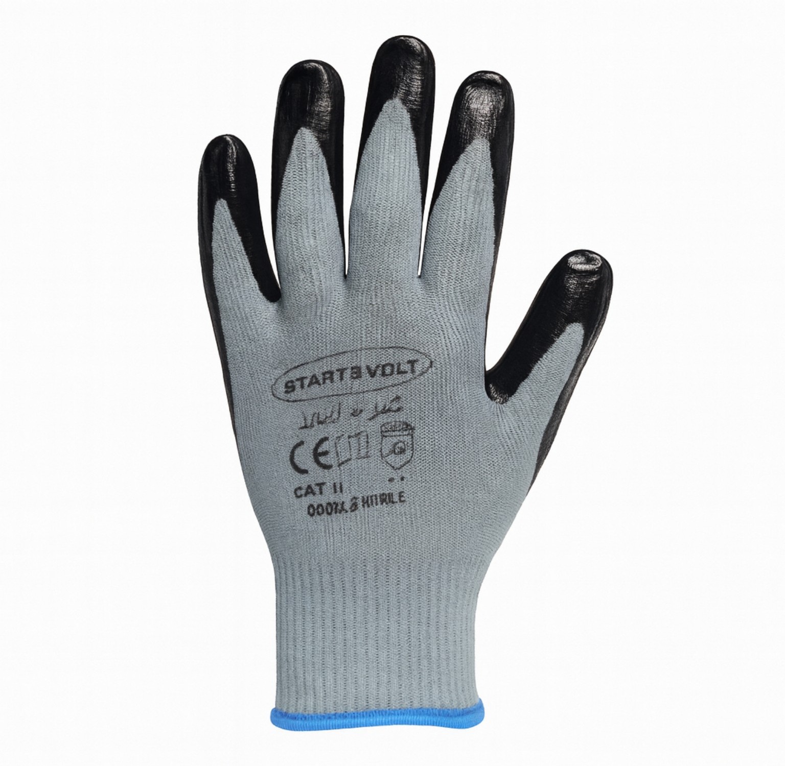 دستکش ایمنی START VOLT روکش نیتریل گزینهای اقتصادی، کاربردی و استاندارد برای افرادی است که به ایمنی، راحتی و کنترل ابزار اهمیت میدهند. مناسب استفاده در محیطهای کاری مختلف با نیاز به دقت و چسبندگی.