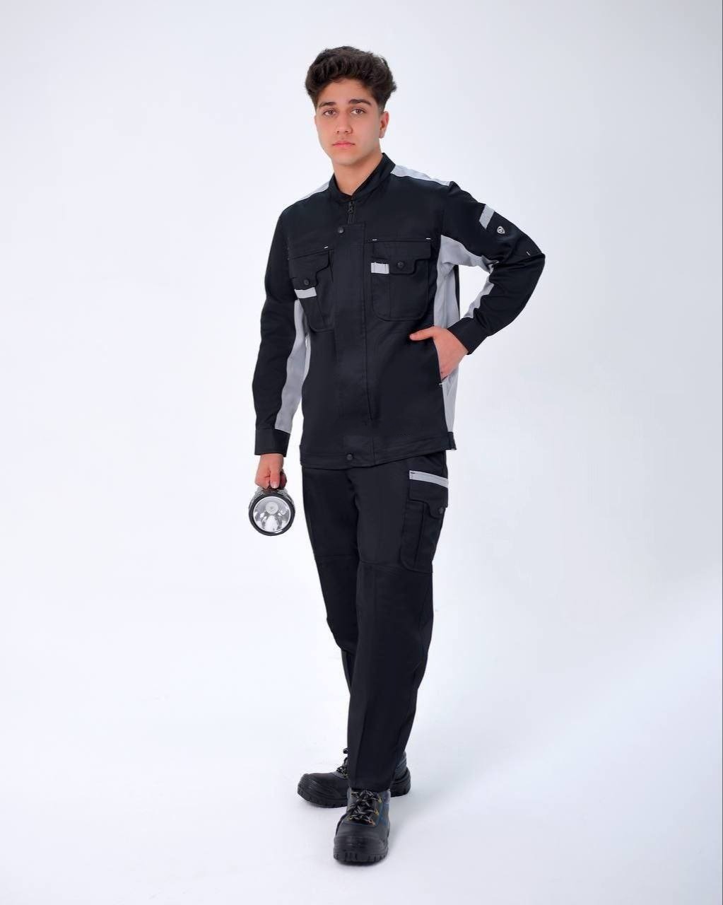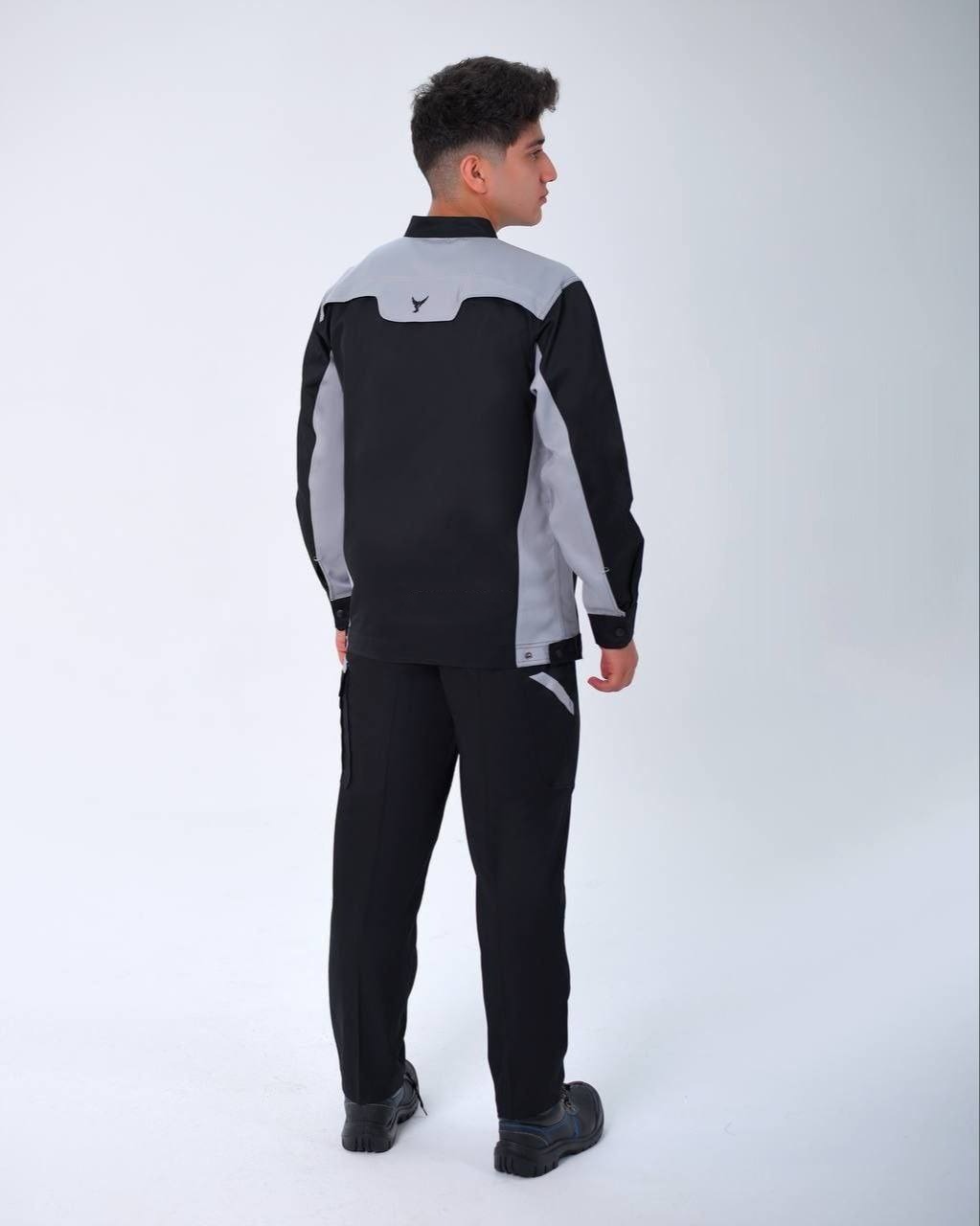 لباس کار سهند مشکی استخوانی پروشات، انتخابی مطمئن برای محیط کاری سخت و پرتحرک است.