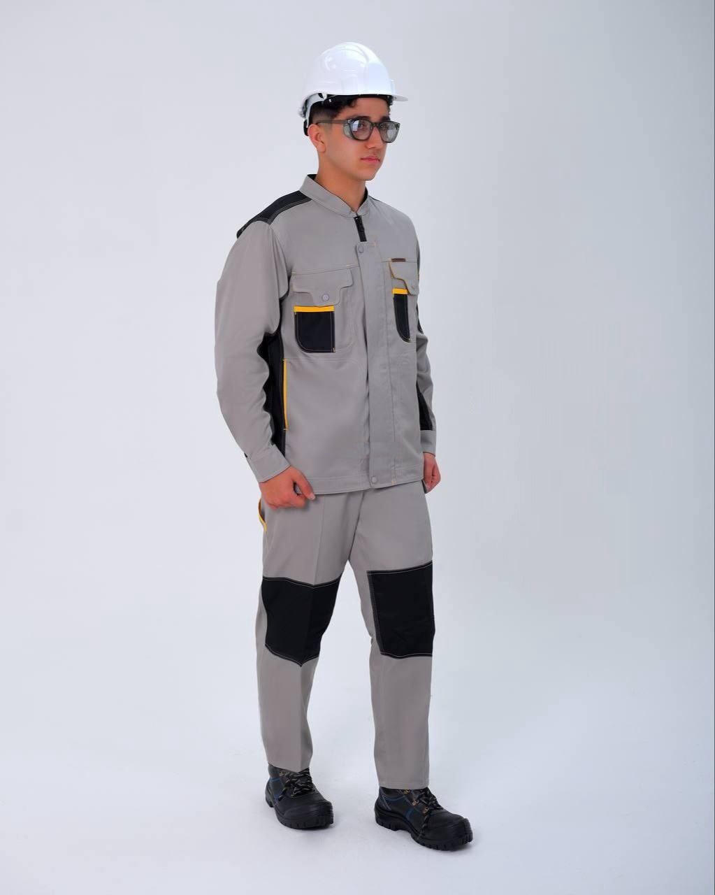 لباس کار سهند استخوانی مشکی پروشات، انتخابی مطمئن برای محیط کاری سخت و پرتحرک است.