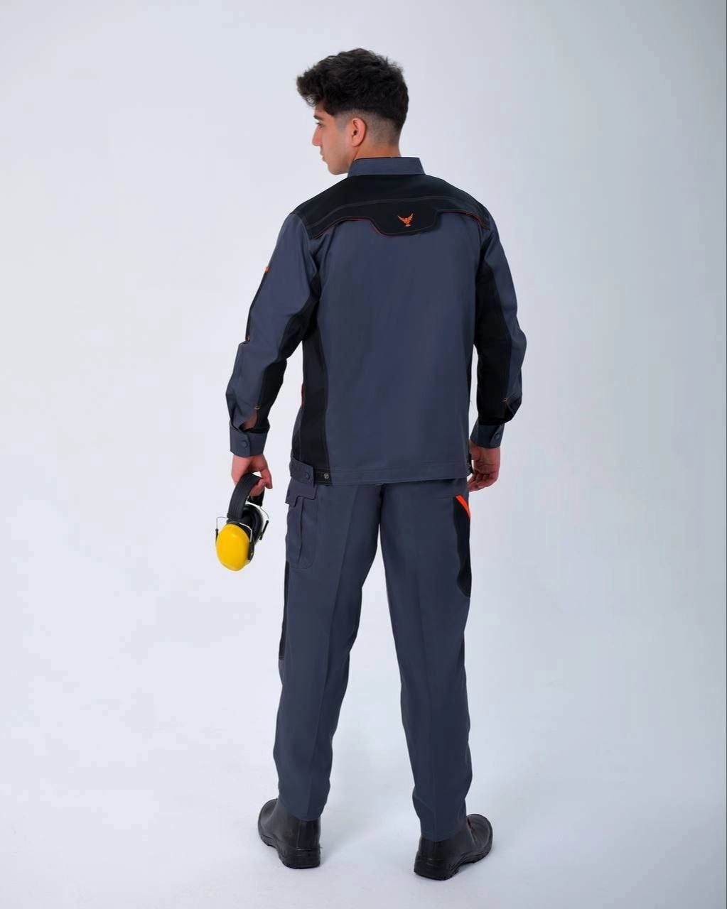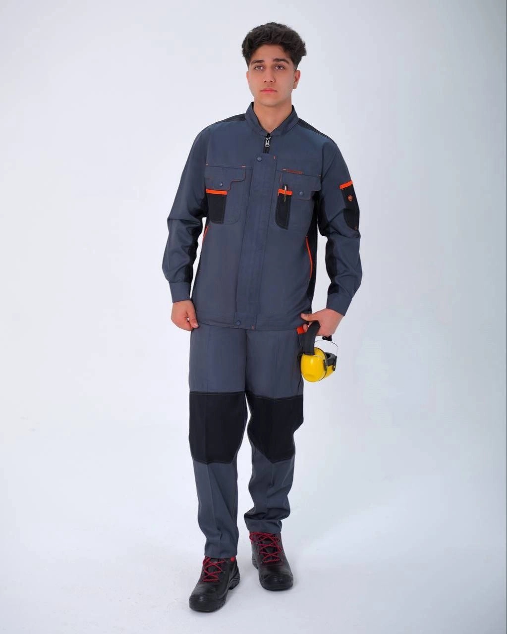 لباس کار سهند طوسی مشکی نارنجی پروشات، انتخابی مطمئن برای محیط کاری سخت و پرتحرک است.