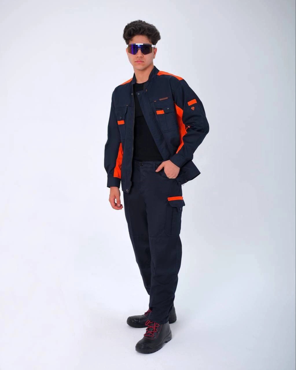 لباس کار سهند سرمه ای نارنجی پروشات، انتخابی مطمئن برای محیط کاری سخت و پرتحرک است.